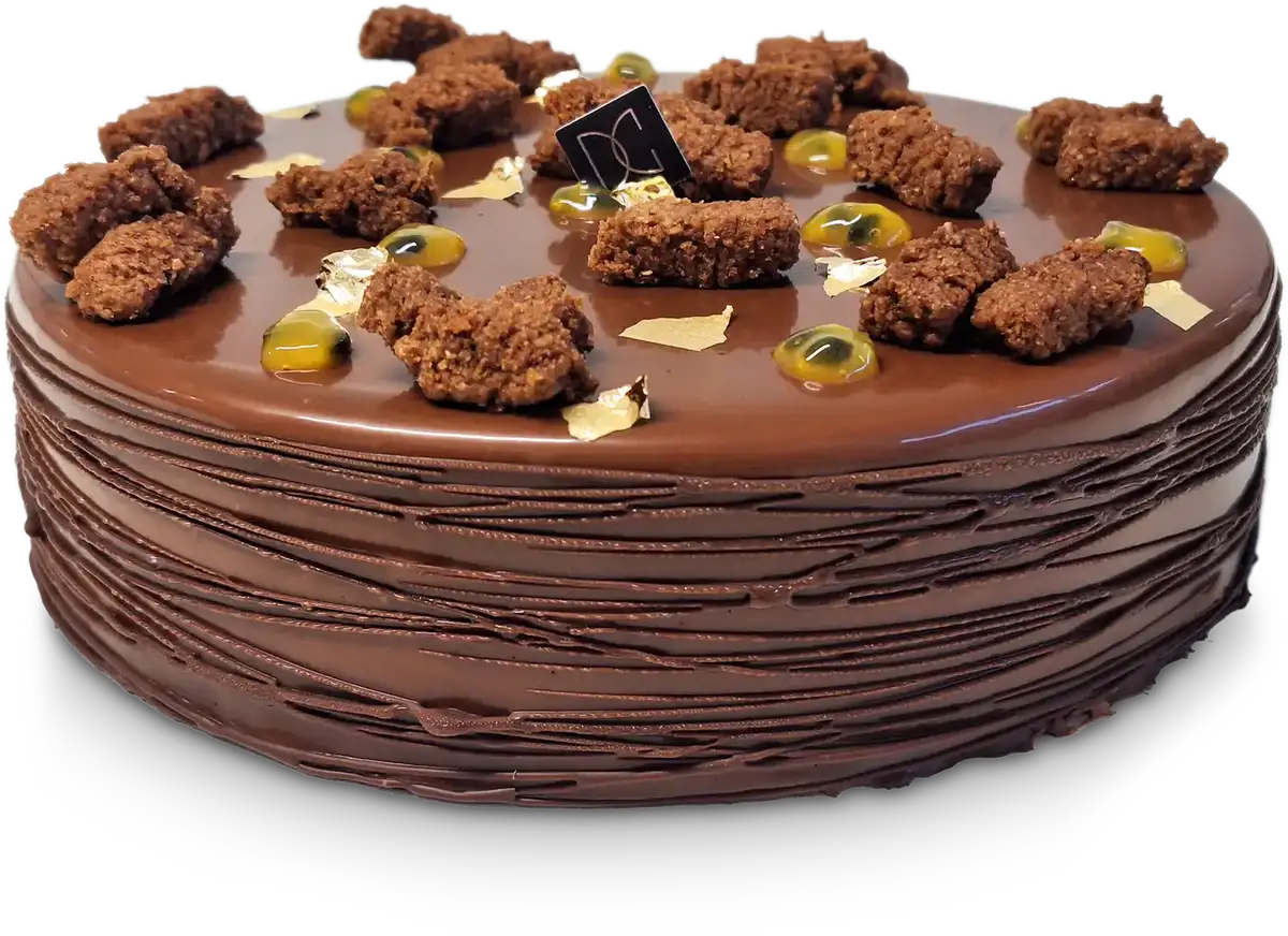 Crémeux aux fruits de la passion, sabayon au chocolat des îles Caraïbes 66% de cacao et biscuit léger aux amandes et coco.