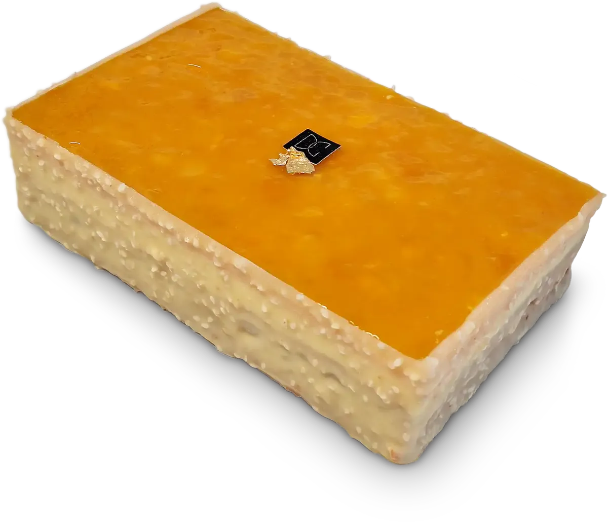 Biscuit amande et son croustillant aux flacons d'avoine, coeur garni d’une compotée d’Ananas et de Mangue, Acidulé au jus de citron vert, mousse rafraichissante au citron vert.