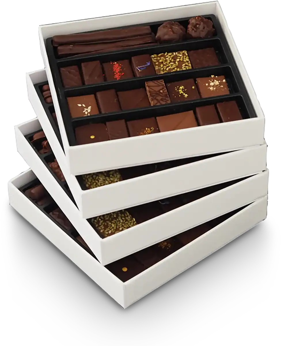 - Coffret de 300 gr : environ 50 chocolats